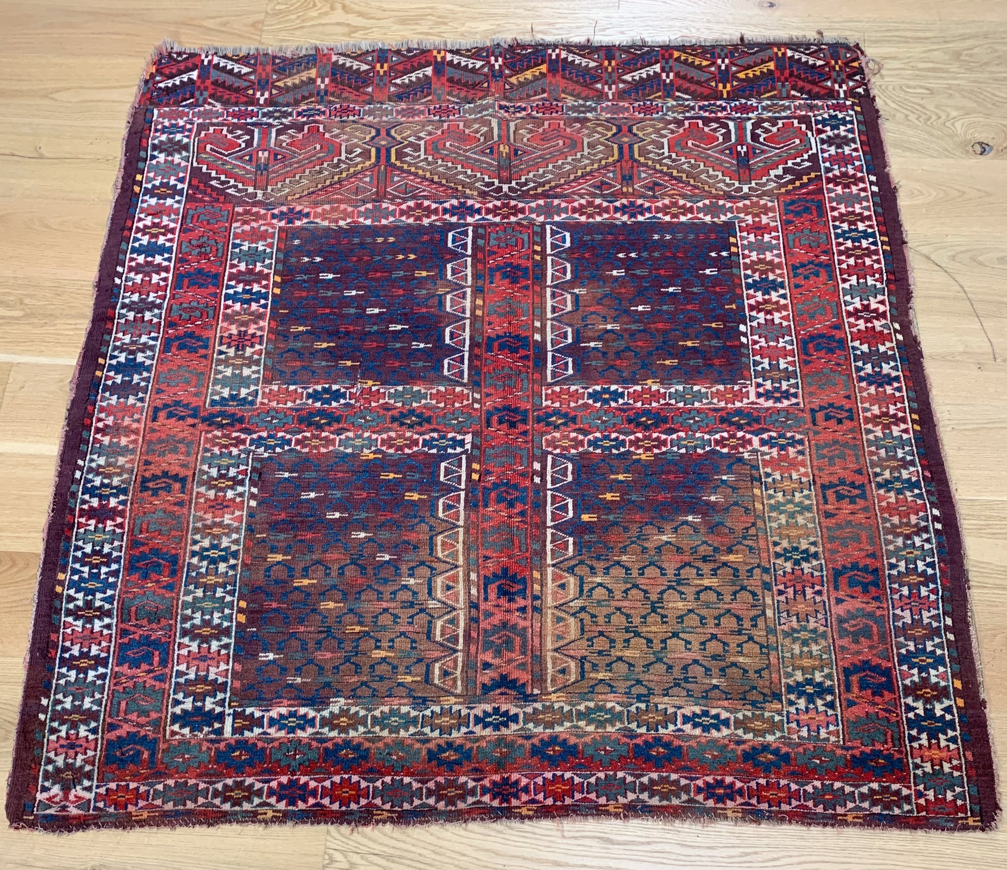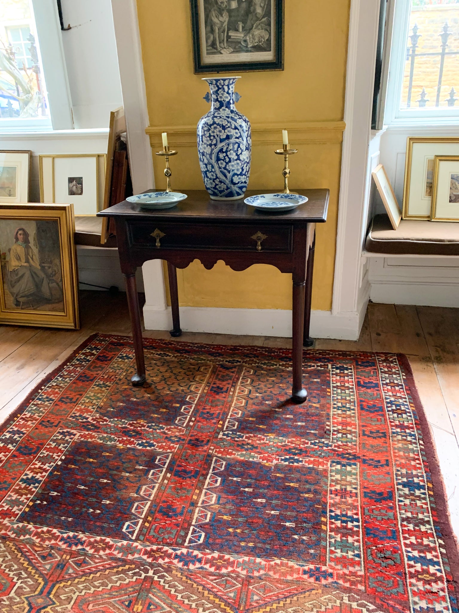 A late 19th century Persian tribal rug in a rare, almost square size (probably cut down from a larger carpet many years ago).
